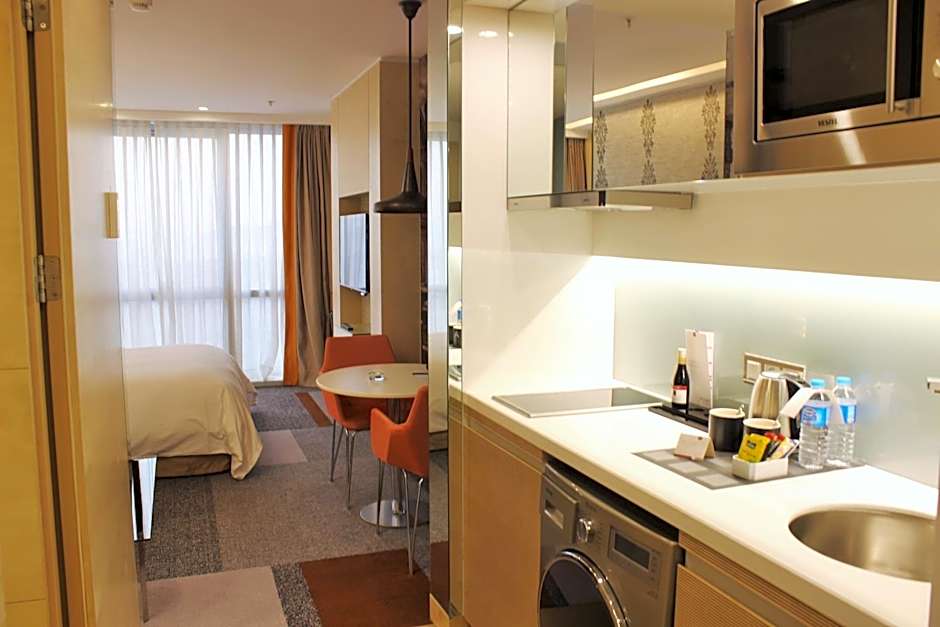 Elegantly designed classic studio offers views of the city. Studio size varies between 24 and 95 ft² and features a queen-sized bed, small seating area, coffee table and a wardrobe. Private bathroom comes with a walk-in shower.